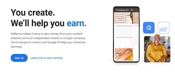 Google Adsense runs on a cost-per-click (CPC) model, which means you’ll earn a commission each time someone clicks on ads on your website. You can receive your payment via electronic transfer (ACH), check, Western Union, and more.