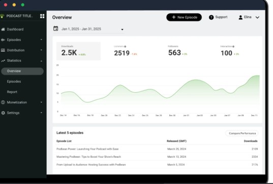 You’ll like how easy to host your podcast up and run. Podbean provides all the tools you need for managing your podcast, such as :