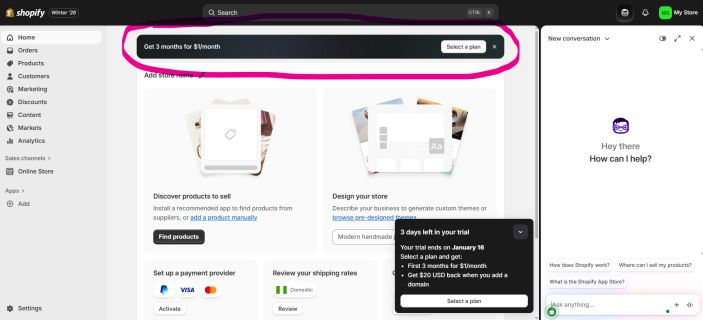 Now, let’s examine how to access the Shopify $1 trial offer for three months.