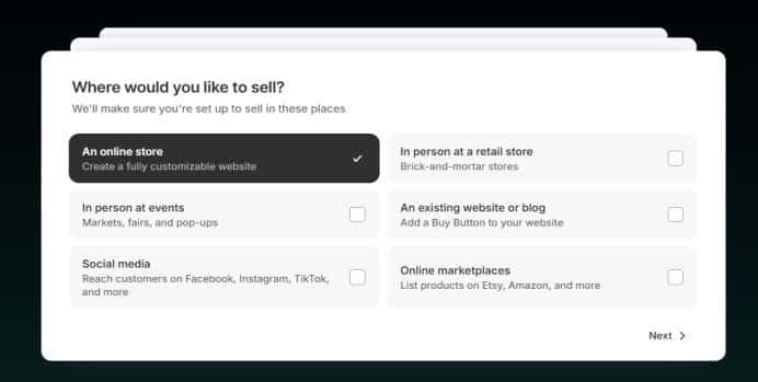 On the next page, you will be asked if your shop is for a new or existing business. Select a new business or idea.