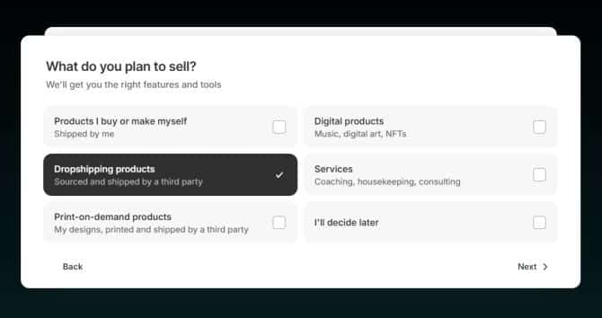 Select dropshipping products. But if you want to sell a digital product, choose digital products; for a POD business, choose print-on-demand products.