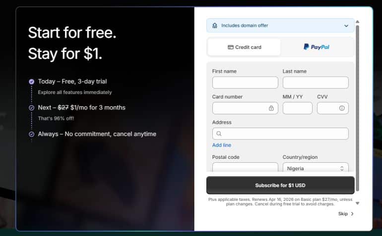 Step 6: Complete your Shopify Trial and Enjoy 3 Months for $1