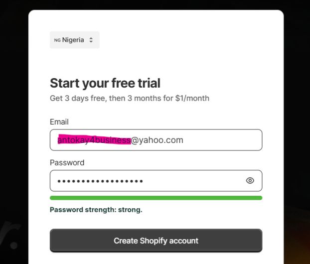 Go to the Shopify Official website. You will land on the trial page, where you can sign up for $1 for 3 months.